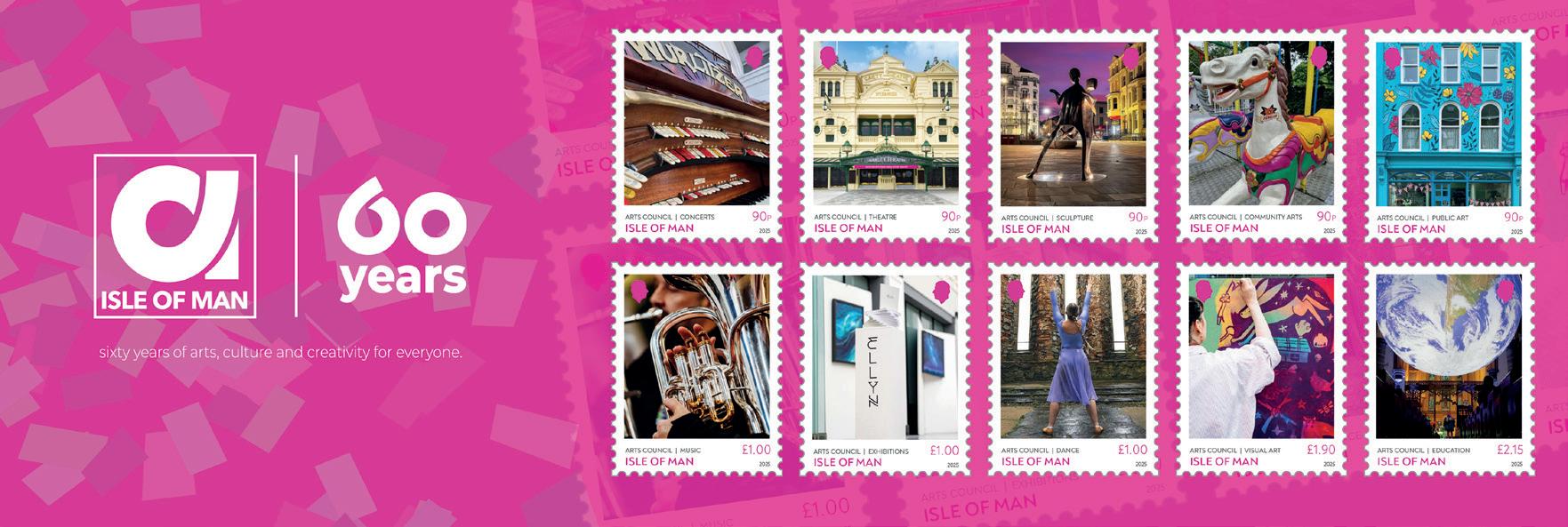 Isle of Man Post Office takes great pleasure in presenting an insight into the diverse and varied areas of the Manx cultural community supported by the Isle of Man Arts Council to celebrate its 60th anniversary.