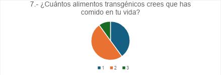 El 50% de las personas sabe lo que son los alimentos transgénicos y un 30% de las personas desconoce lo que son mientras que el 20% no está segura de saber lo que son