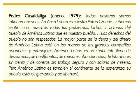 “Si queremos que Jesús resplandezca en medio de las tinieblas que sobrecogen a nuestro amado mundo latinoamericano debemos, como discípulos que somos de él, tomar una postura verdaderamente profética, que transparente la misma luz, aquella que iluminó al hombre del siglo I y que ahora quiere iluminar, y alumbra, al hombre latinoamericano, sumergido todavía, quinientos años después de una supuesta evangelización, en las tinieblas de una larga noche de miseria, explotación, enfermedades, hambre, ignorancia y abandono”.