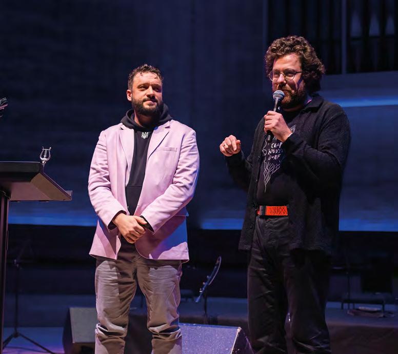 Ukrainian composers Illia Razumeiko and Roman Grigoriv (pictured below) – who travelled specially from Ukraine – for their opera Chornobyldorf, a powerful portrait of humanity’s need for cultural sustenance in the wake of shattering global events. Huddersfield Contemporary Music Festival was applauded for bringing the whole Ukrainian cast and company to Yorkshire for the opera’s UK premiere.