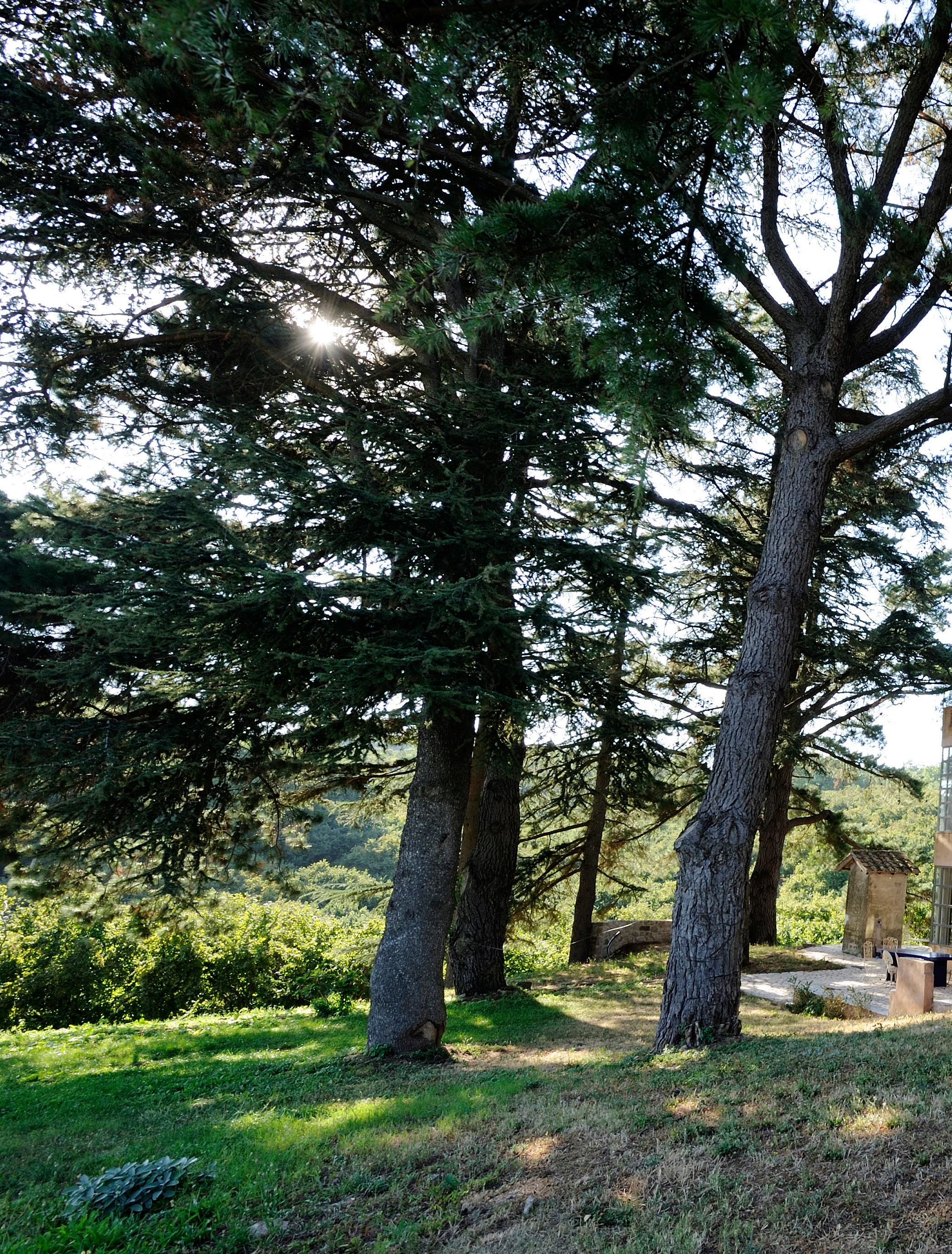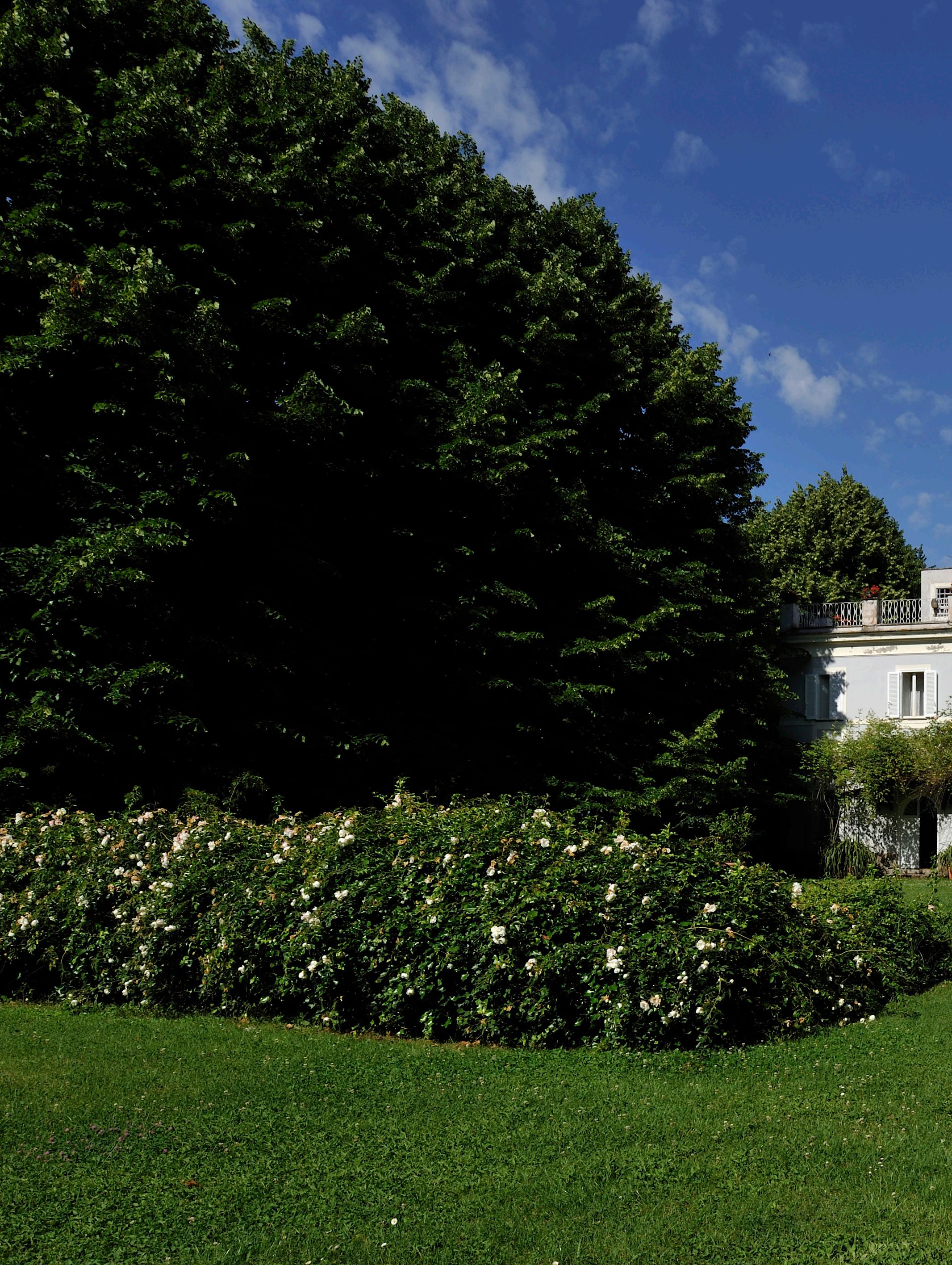 The garden, with botanical planting from 1790, has many rare trees (33 species): Sequoia sempervirens, Magnolia grandiflora, Cedrus deodaore, Taxus baccata, Ilex aquifolium, Abiespectinata, Thuja gigantea and gigantic specimens of Mediterranean flora, 200-yearold strawberry trees, Roman pines and giant hollyhocks. It is populated in March with violets and daffodils, wild strawberries and orchids in May, and mushrooms in the fall.