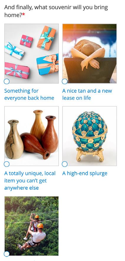 This is the method we'll use as an example throughout. Quizzes are a fun, unobtrusive way to get agents engaged pre-trip and collect valuable data. But they do require more planning to determine what experiences you'll customize and what information you'll need to collect to categorize agents accordingly.