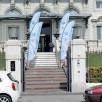 Una vettura sul podio in fase di partenza dall'interno dell'Accademia Navale