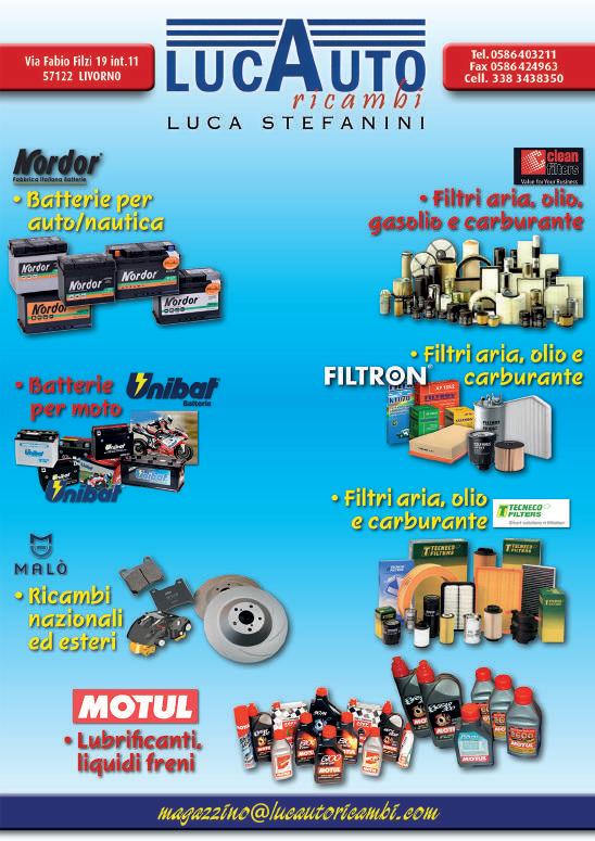 Via Firenze, 138 - 57121 (LI) - Tel. 0586 425880 - Fax 0586 445760 Carrozzeria • Gommista • Noleggio auto Officina autorizzata email: b.auto@tin.it 800010606 Partner www.glassdrive.it OFFICINA AUTORIZZATA Auto - Moto - Scooter - Furgoni fino a 35 q - Camper SERIETÀ E PROFESSIONALITÀ Centro autorizzato revisioni Via G. Piombanti, 14 (zona Shangay) - Tel. 0586 424691 - E-mail: centrorevisionioksrl@gmail.com LIVORNO - VIA MONDOLFI, 164 (ARDENZA) - TEL. 0586 504887 - www.ciolliautofficina.it Officina Rivenditore Riparazioni auto plurimarche elettrauto e gommista DIAGNOSI ELETTRONICA RIPARAZIONE CENTRALINE E QUADRI DIGITALI IGIENIZZAZIONE E RICARICA ARIA CONDIZIONATA Officina autorizzata SOS auto