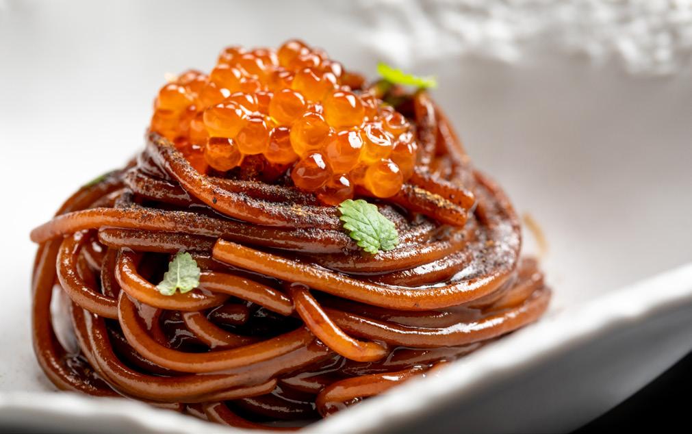 Spaghetto alla tintura di cipolla e uova di salmone balik