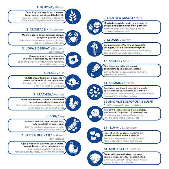 Vi preghiamo gentilmente di informare il personale di servizio di eventuali allergie o intolleranze
