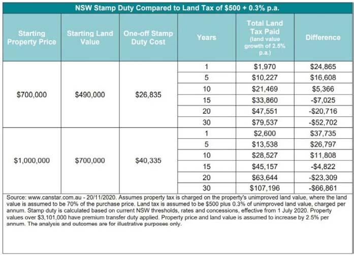 NSW 재무부 모델링에 따르면 연간 토지세 납부가 매입 인지세 납부 금액 에 도달하는데