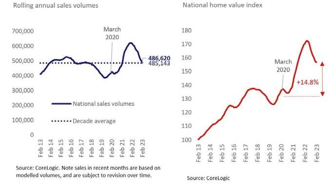 2월까지 지난 1년동안 호주 집값은 평균 7.9% 하락했다. 하락률은 주도 별로 차이를 보인다. 호주에서 집값이 가장 비싼 주도인 시드니의 하락률은
