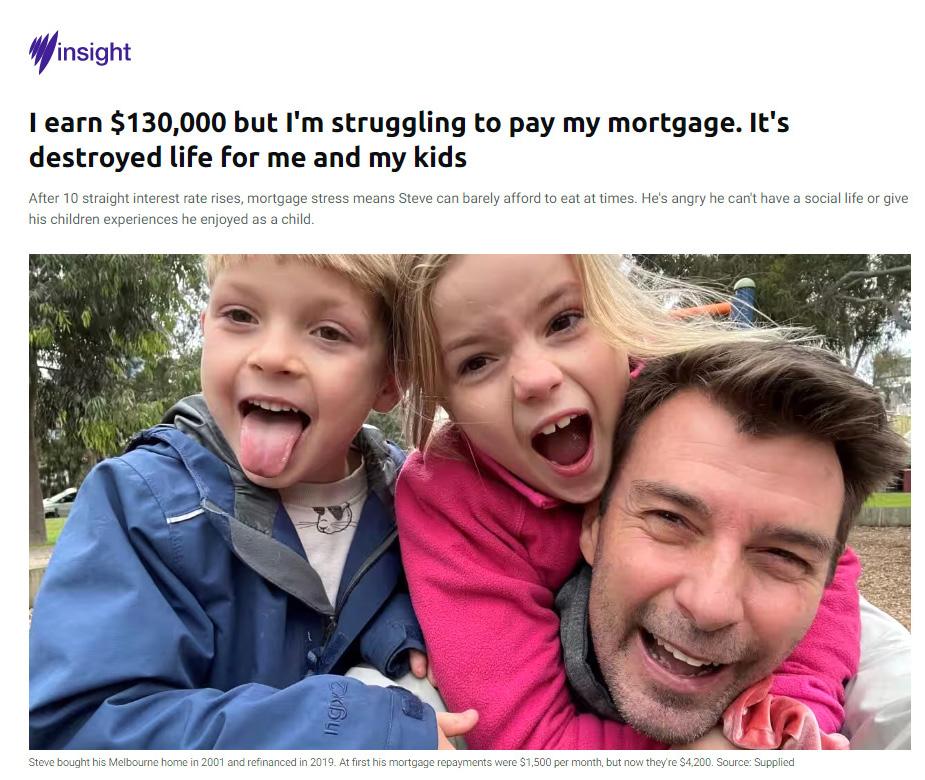 멜번 남성이 10회 연속 금리 인상 앞 에서 속절없이 두 손을 들었다. 모기지 대출금을 갚으려고 고군분투하면서 두