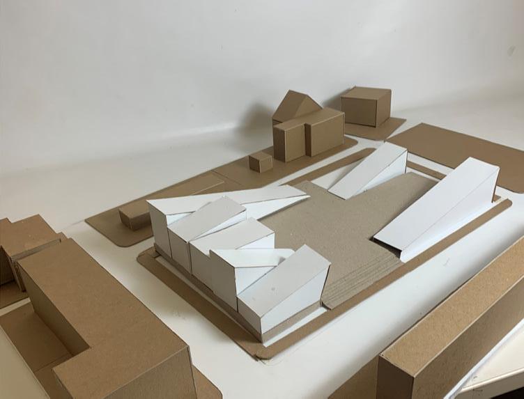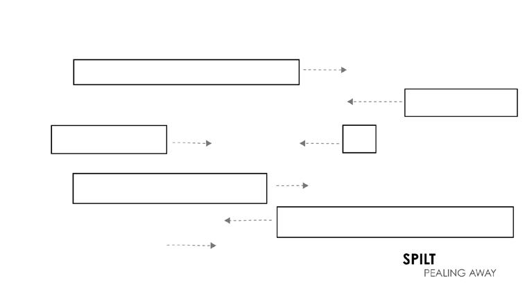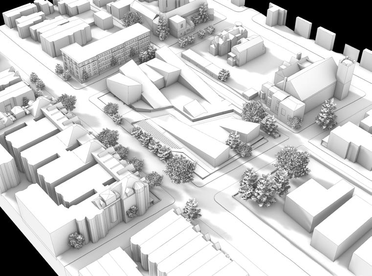 The massing is formed with a few moves: interactions, crossing but also connection and spillage of the peeling of the original building.