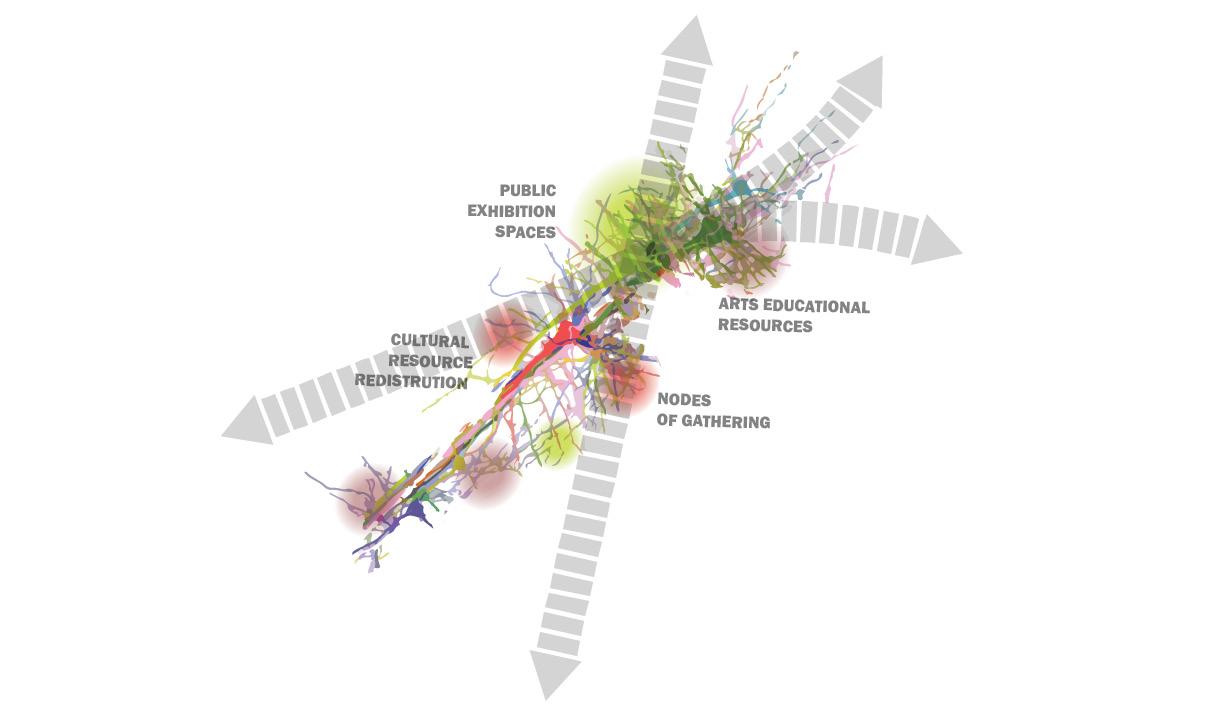 The Logan Neighborhood, once a vibrant place of performance art and culture, currently faces significant challenges due to the existing rail line that runs across the area. Consequently, this rail line fragments the community, leaving large vacant lots and lowering property values. Hence, the objective of this project is to submerge the existing rail lines and repurpose this underutilized space to craft dynamic public areas and cultural art spaces, thereby giving Logan an identity within the larger Philadelphia urban landscape.