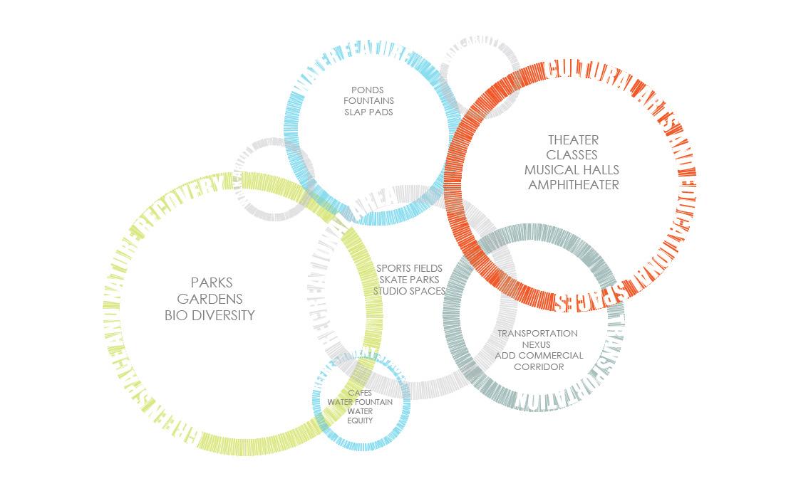Interwoven spaces anchored by a robust program attract, inspire, and educate. Flagships amplify energy, radiating vibrancy through the site, fostering a rich cultural tapestry within the overarching program.