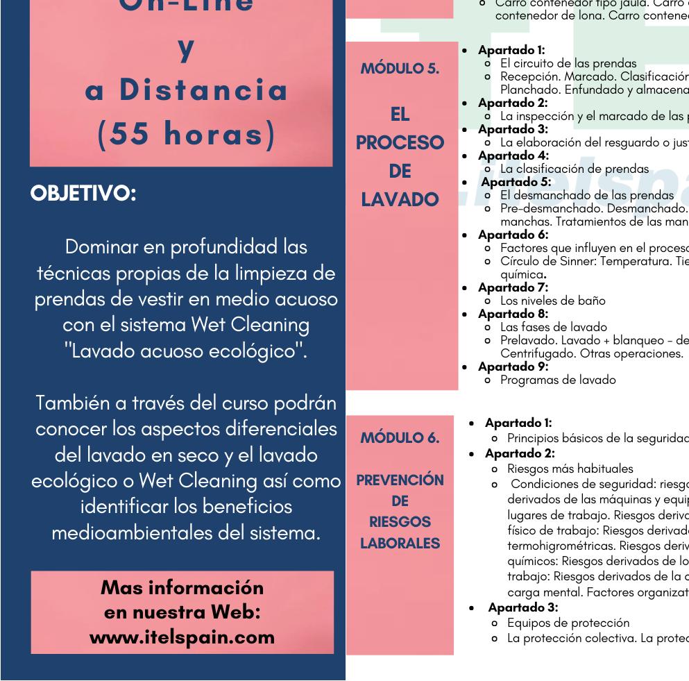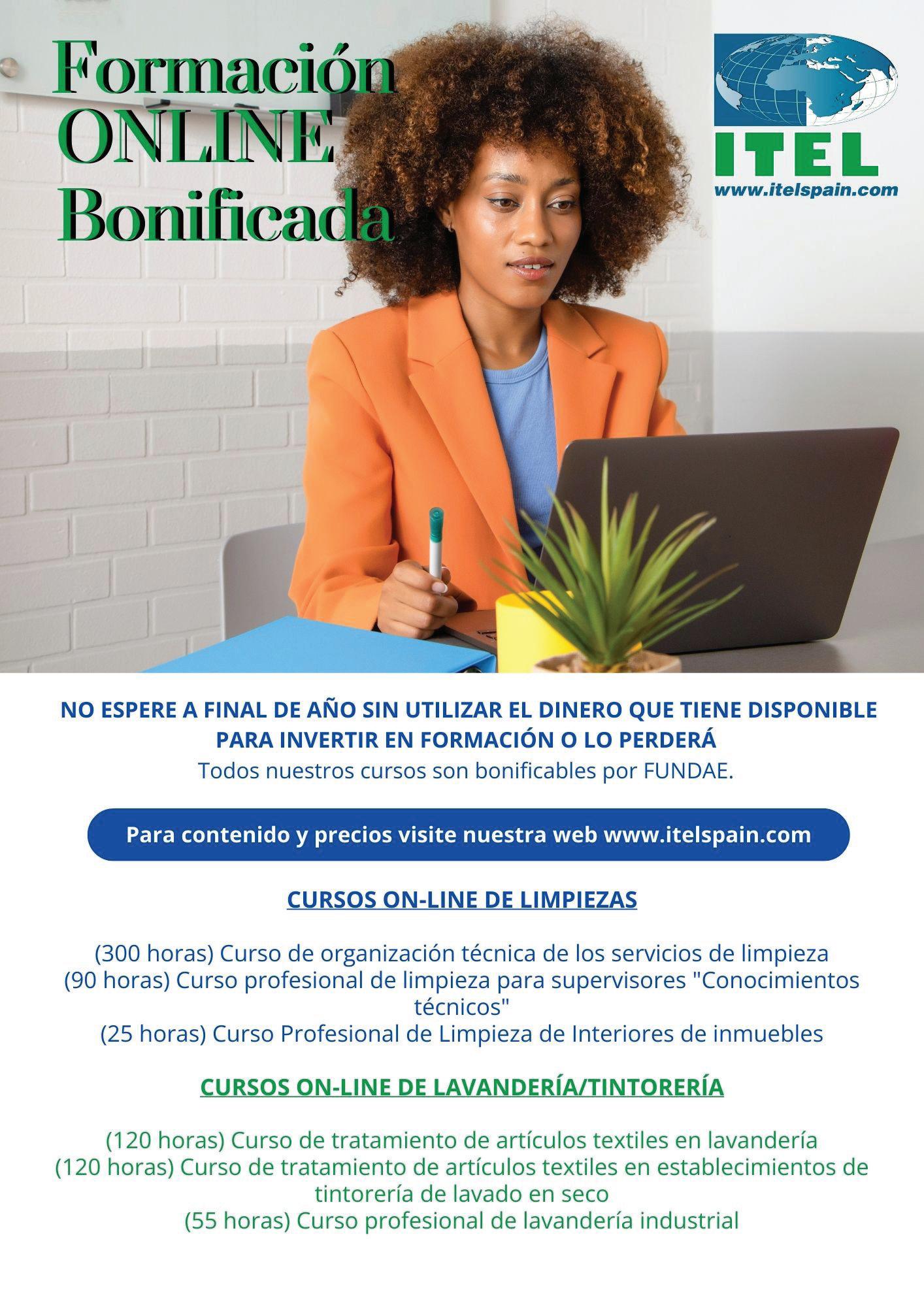 ITEL-Instituto Español de limpiezas ofrece cursos técnicas en modalidad on-line, para cubrir sus necesidades formativas o las del personal de sus empresa. Estos cursos utilizan una metodología muy práctica que asegura los mismos resultados de aprendizaje que los cursos presenciales.