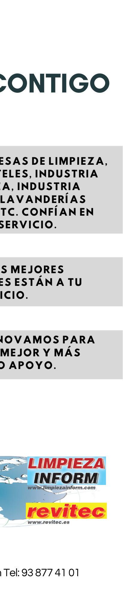 ITEL - C/ Cadí, 27 - C/ Moixeró s/n - Pol. Ind. Riu d’Or - 08272 - St. Fruitós de Bages (Barcelona) España - Tel. +34 93 877 41 01 - itel@litelspain.com - www.limpiezainform.com - www.itelspain.com - www.revitec.es
