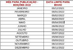 **Respeitar as datas para publicação. Caso contrário, não será possível a publicação no mês de referência.