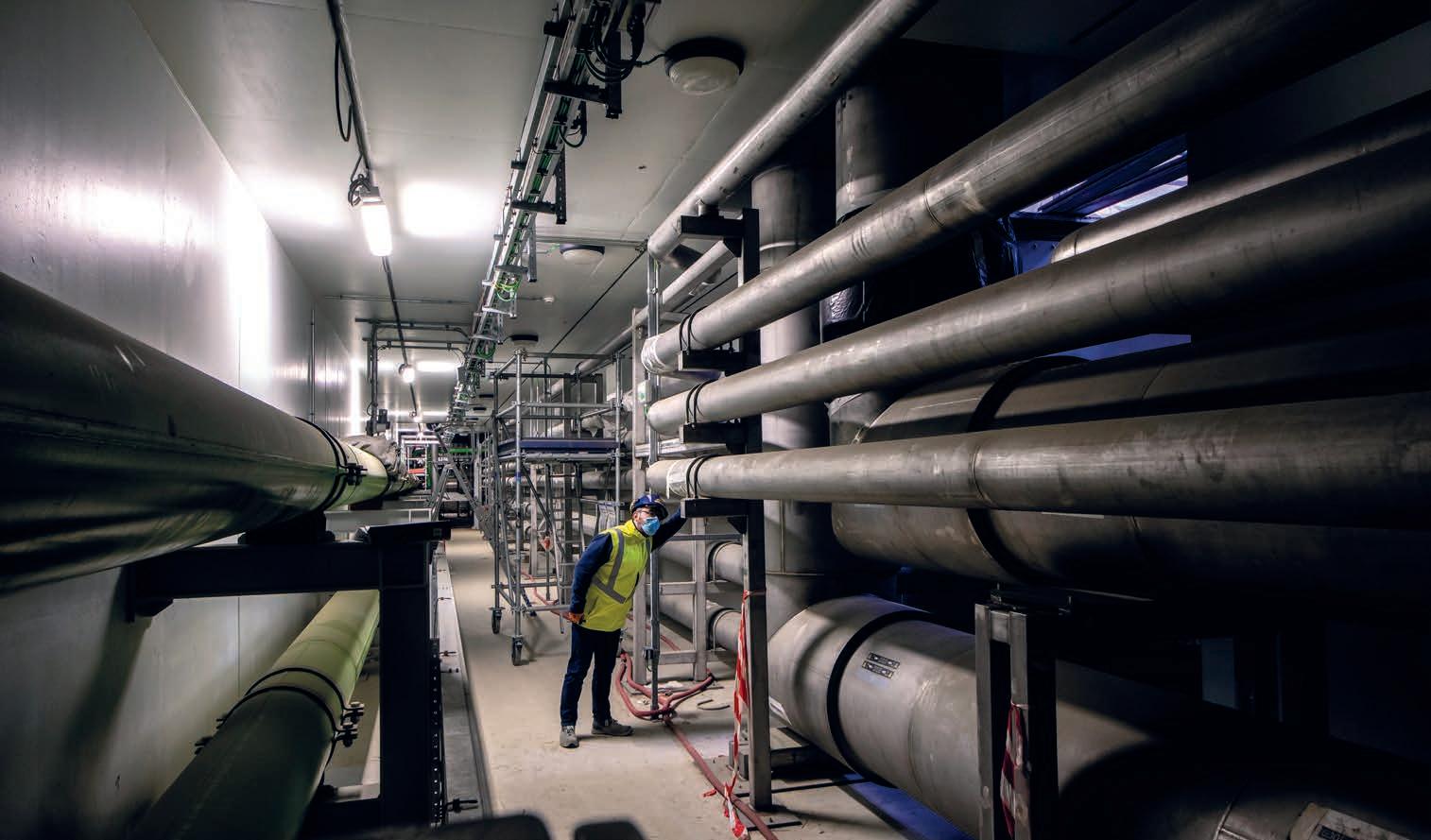 The formal transfer of the heat rejection system from construction to operation is finalized in August, after the last of the equipment is installed. Commissioning is now underway. October 2021