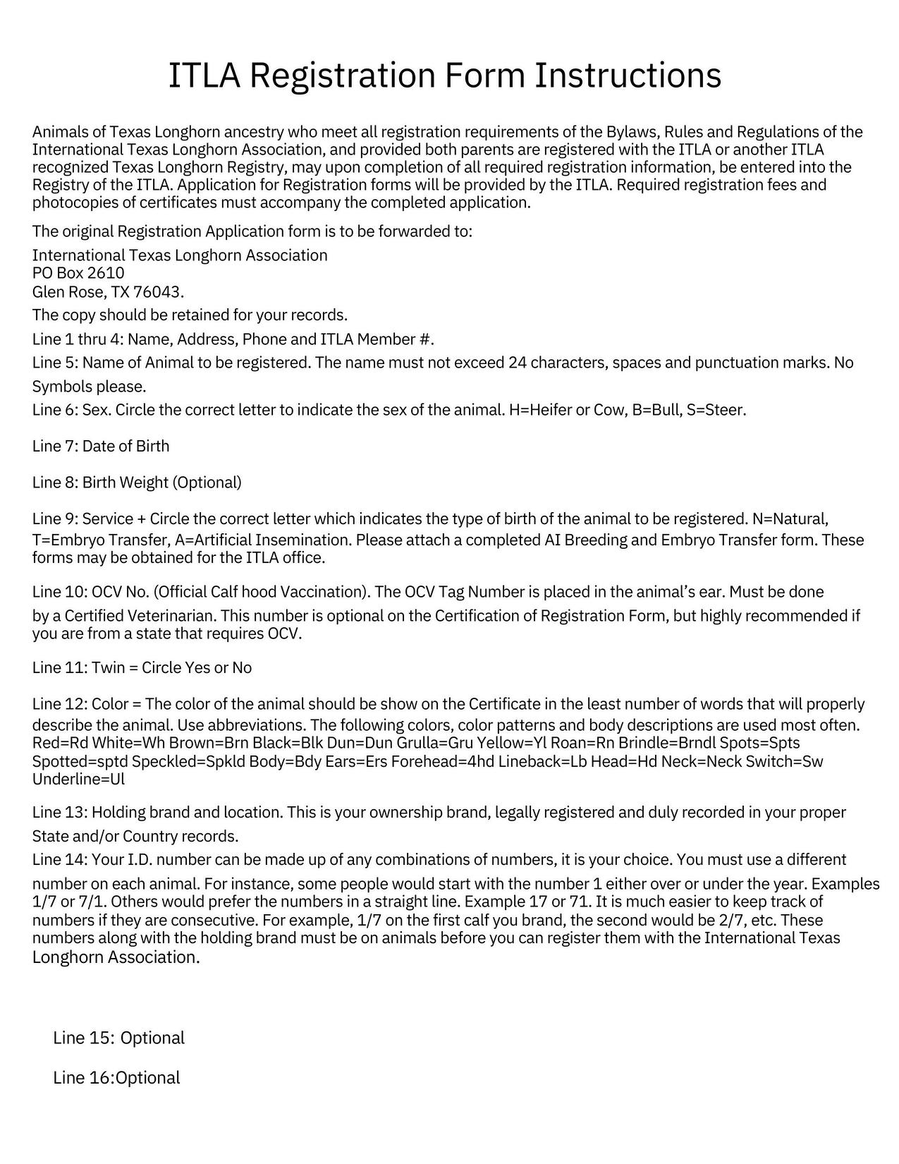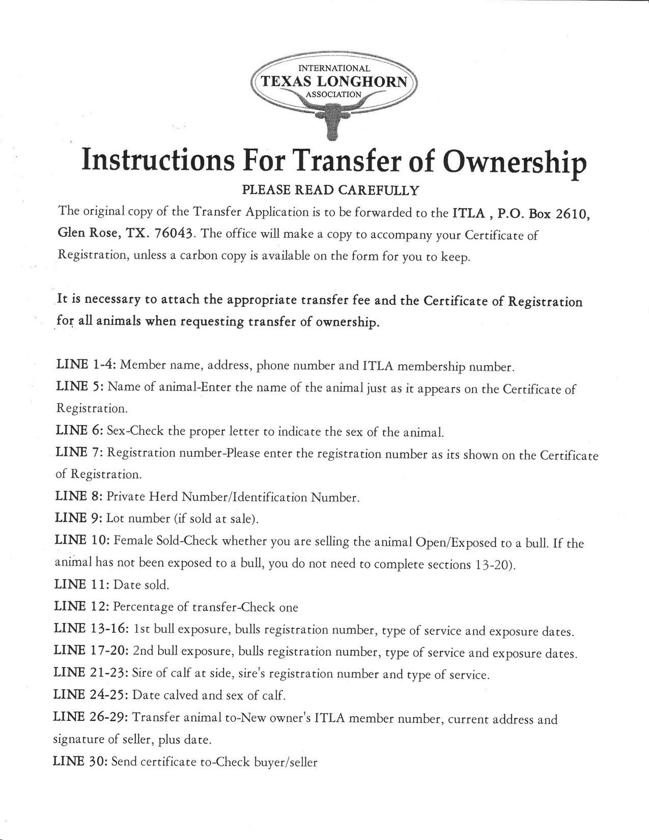 Lease/Loan of Sire: The signature of the Lessee may be used in lieu of the owner of the sire when submitting a registration application providing this form is completed and filed with ITLA by the owner within 30 days after delivery of sire to Lessee.