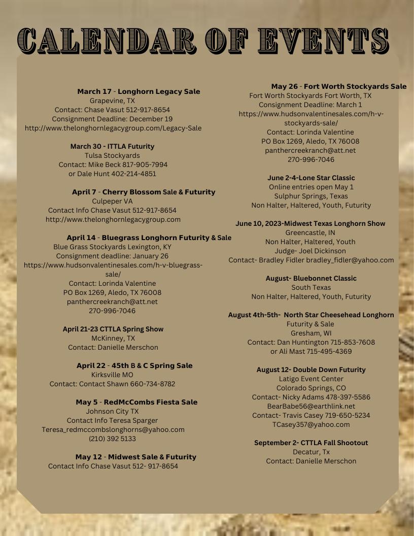 THE LONGHORN DROVER THE LONGHORN DROVER THE LONGHORN DROVER MARCH 2023 | VOLUME 47 MARCH 2023 | VOLUME 47 MARCH 2023 | 47 SHOW EDITION SHOW EDITION SHOW EDITION
