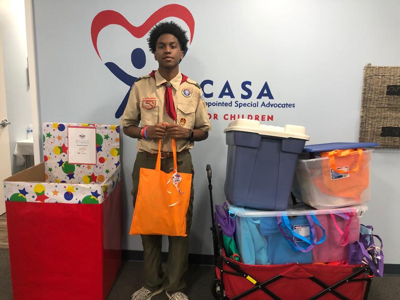 L a n g s t o n ' s E a g l e p r o j e c t c o n s i s t e d o f c r e a t i n g b i r t h d a y b a g s f o r C A S A P r i n c e G e o r g e ' s C o u n t y W i t h h i s l e a d e r s h i p t h e t r o o p c r e a t e d 5 0 b i r t h d a y b a g s f o r y o u t h i n t h e C o u r t A p p o i n t e d S p e c i a l A d v o c a t e s ( C A S A ) p r o g r a m , t h a t s u p p o r t s a n d p r o m o t e s c o u r ta p p o i n t e d a d v o c a t e s f o r a b u s e d o r n e g l e c t e d c h i l d r e n i n o r d e r t o p r o v i d e c h i l d r e n w i t h a s a f e a n d h e a l t h y e n v i r o n m e n t i n p e r m a n e n t