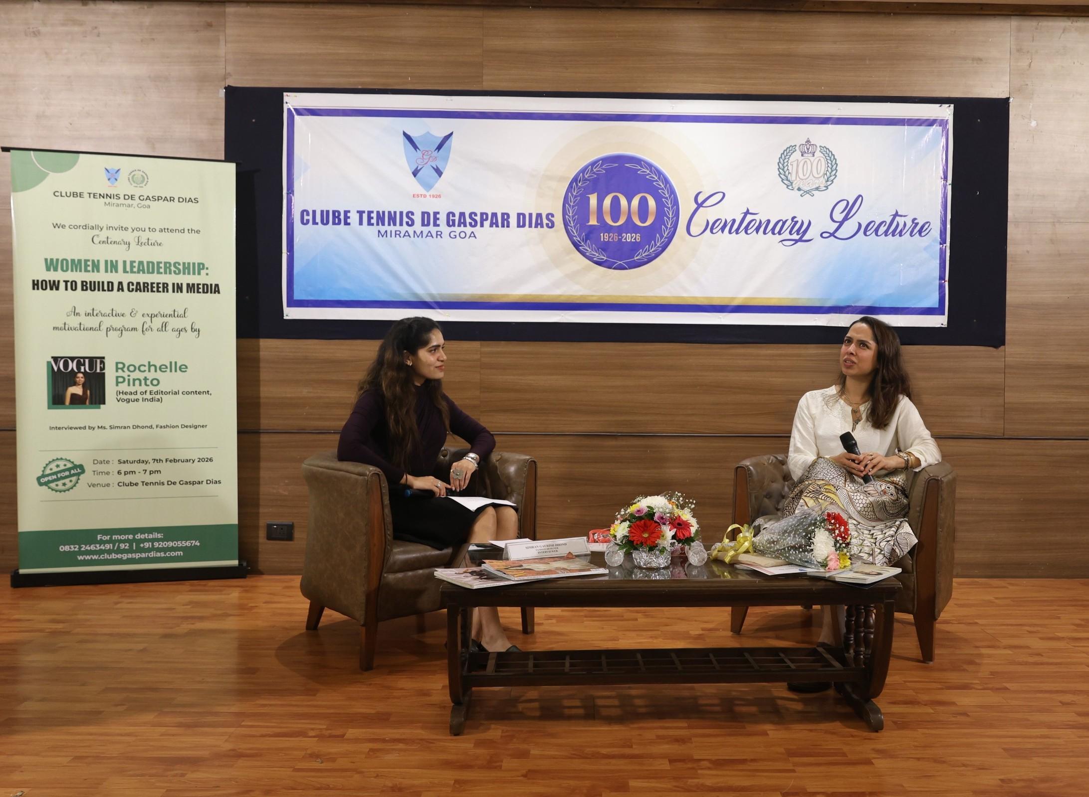Rochelle Pinto, Head of Editorial Content at Vogue India, speaks on ‘Women in Leadership: Building a Career in Media’ at Clube Tennis de Gaspar Dias’ centenary celebrations