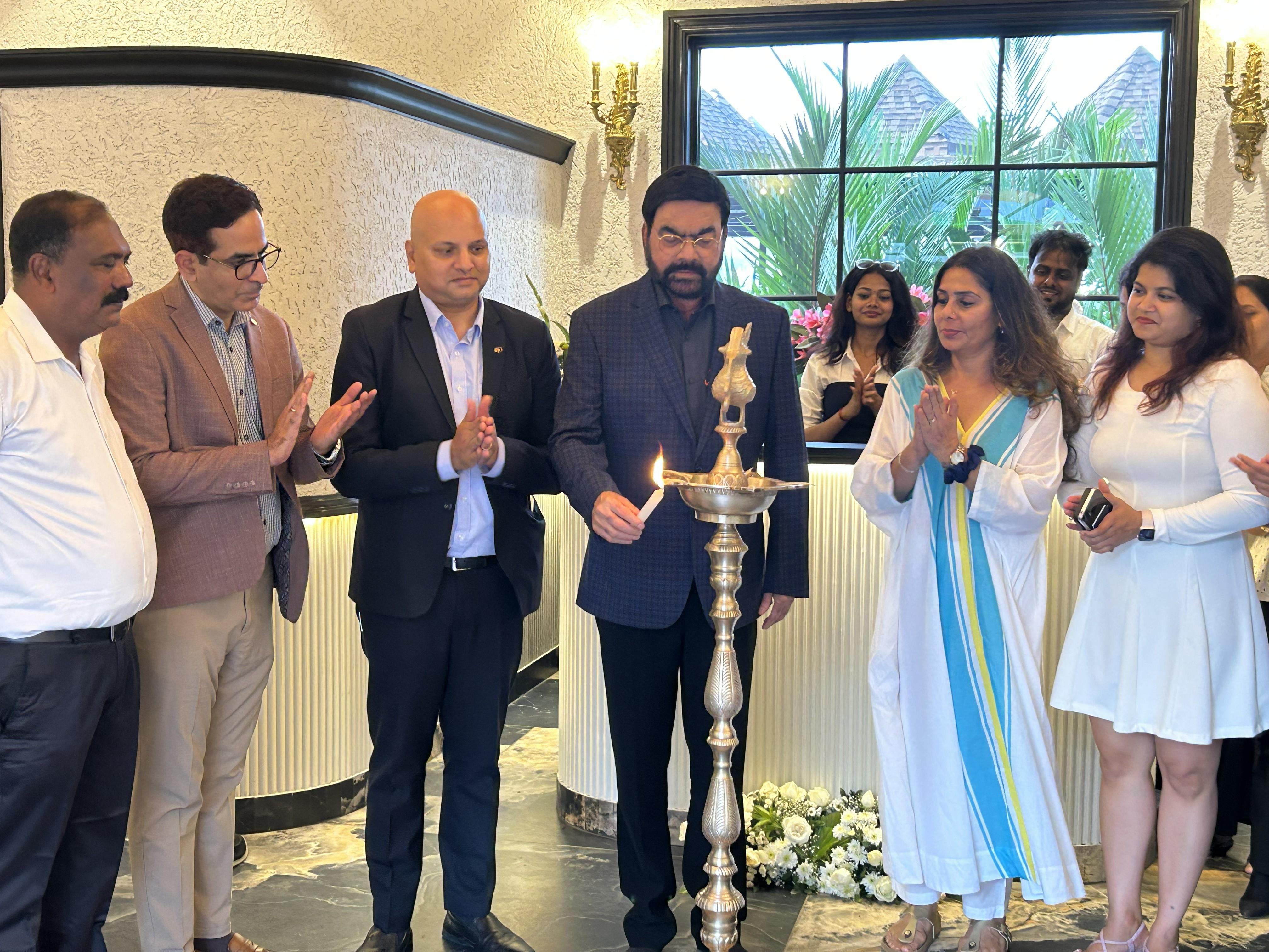 Chairman of the MRG Group Dr. K. Prakash Shetty (fourth from left) lighting the lamp at the inaugural ceremony marking the launch of The Riverfront, in Panaji