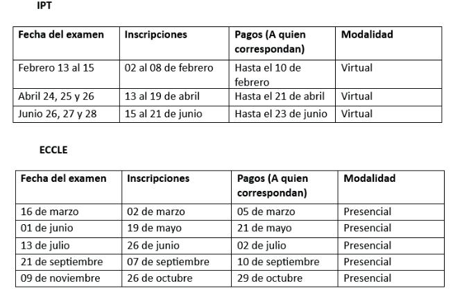 Publicamos el cronograma de exámenes APTIS, ECCLE e IPT