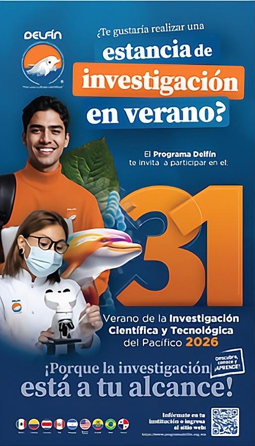 El Programa Delfín convoca a estudiantes de las instituciones afiliadas a participar en el 31.° Verano de la Investigación Científica y Tecnológica del Pacífico 2026, una experiencia académica de alto nivel que promueve la formación investigativa y el fortalecimiento del talento científico en la región.
