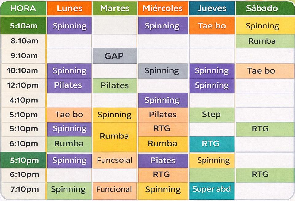Con una amplia oferta para todos los gustos y necesidades, el gimnasio de la Institución comparte sus horarios de clases para el semestre 2026-I. La oferta va de lunes a sábados con opciones para asistir en la mañana, medio día, tarde y jornada nocturna.