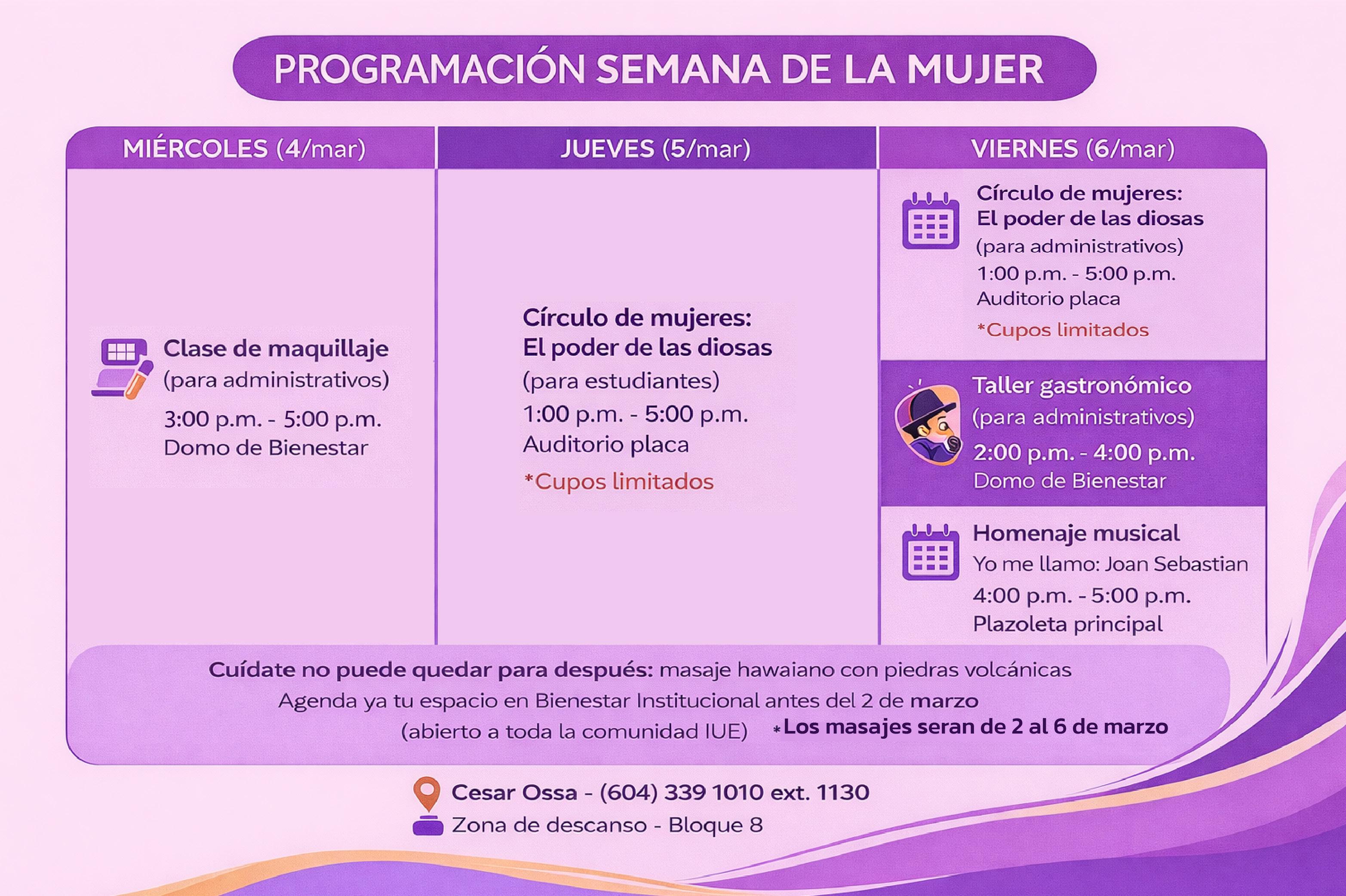 Invitamos a todas las administrativas, estudiantes, docentes y egresadas a consultar la programación planeada en torno al bienestar de las mujeres y asistir para conmemorar esta importante fecha.