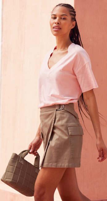 03 | Shirt z głębokim dekoltem w serek 3999 04 | Spódnica bojówka 7999
