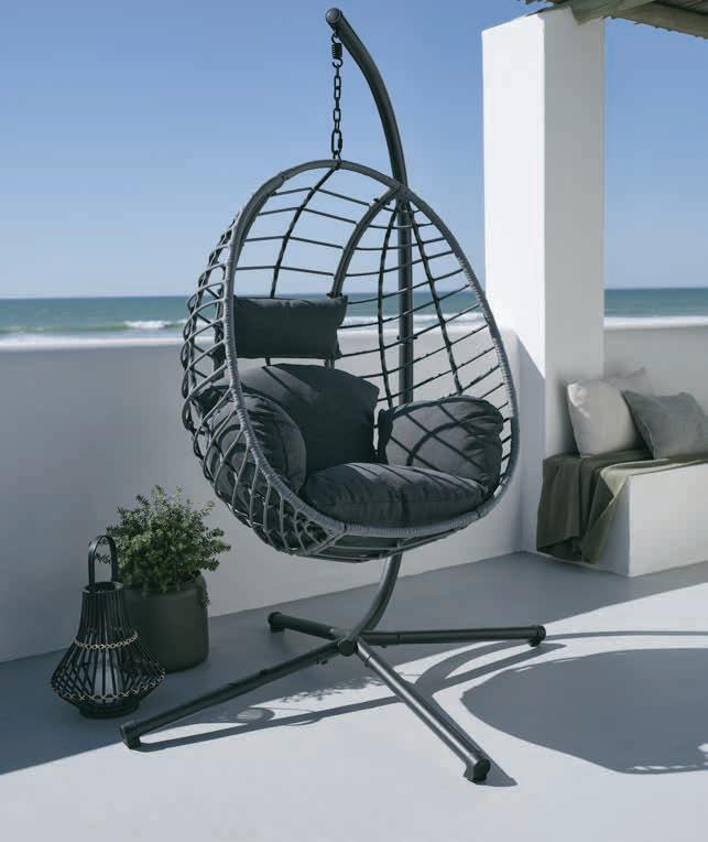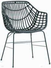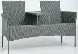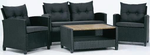 Stal i technorattan. Z podstawą i luksusowymi poduszkami w wytrzymałym poszyciu poliestrowym.