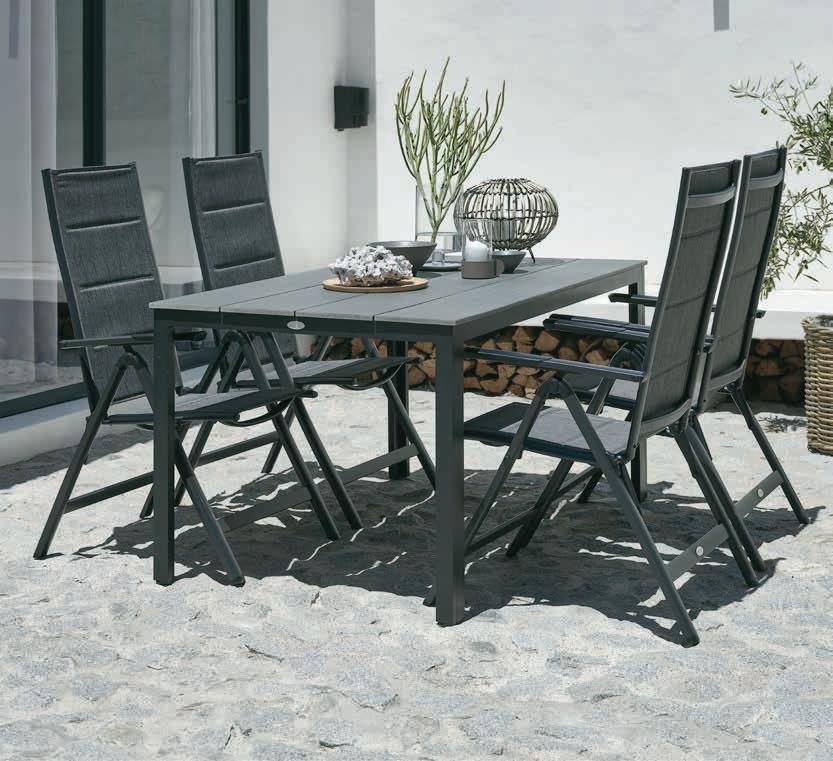 Aluminium i poliester. W zestawie luksusowe poduszki z szybkoschnącym, strukturalnym pokrowcem. Nadaje się ustawiania w stos. 1 SZT.