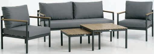 TEGLUM stół + sofa + 2 krzesła Stół: Aluminium, stal i ceramika. S65 x D127 x W35 cm 3-miejscowa sofa i krzesło: Stal. Z luksusowymi poduszkami w wytrzymałym poszyciu.