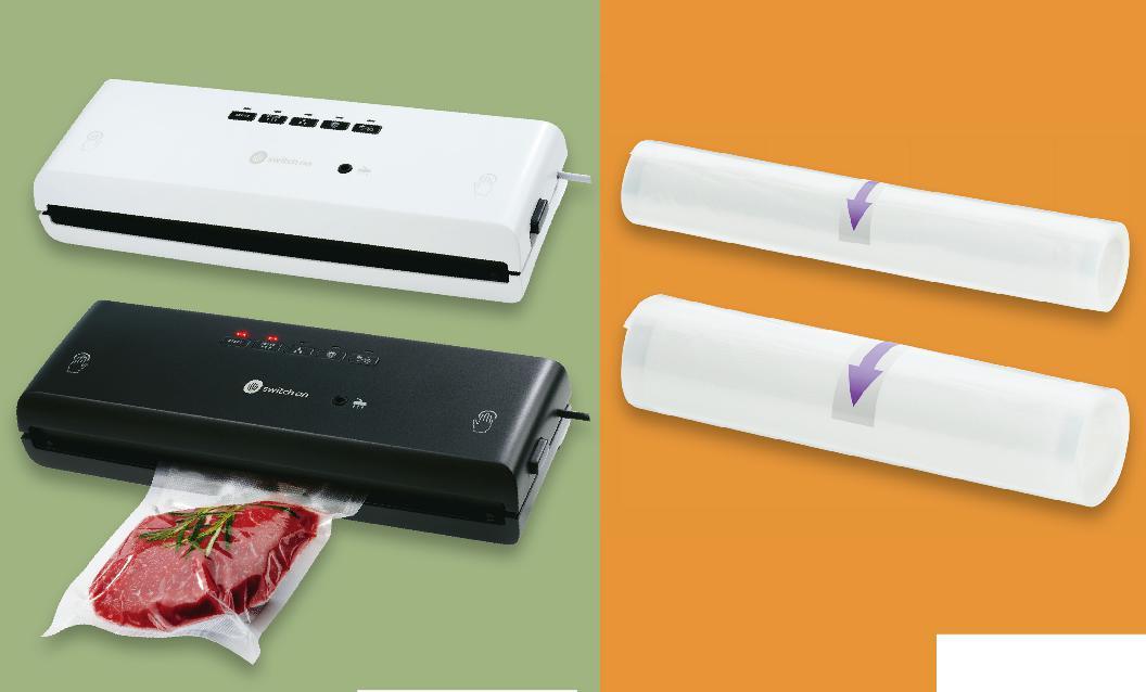 SWITCH ON® Zgrzewarka próżniowa do rolek foliowych, szczelnie zamyka żywność, różne kolory