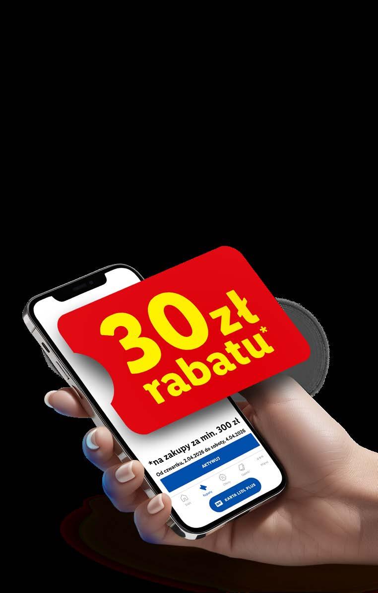 * Szczegóły oraz informacje o artykułach wyłączonych z akcji w aplikacji Lidl Plus. Do wartości zakupów podlegającej rabatowi nie wlicza się: napojów alkoholowych oraz piw, w tym piw bezalkoholowych, oraz innych napojów bezalkoholowych wykorzystujących znaki towarowe napojów alkoholowych lub symbole graficzne z nimi związane, lub nazwy i symbole graficzne przedsiębiorców produkujących napoje alkoholowe, wyrobów tytoniowych, produktów leczniczych, preparatów do początkowego żywienia niemowląt oraz przedmiotów służących do karmienia piersią, kart prezentowych Lidl.