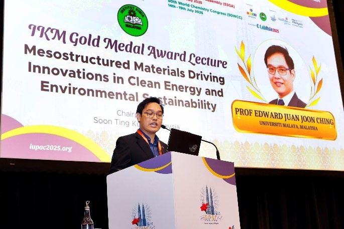 Organised by Institut Kimia Malaysia (IKM) under auspices of the International Union of Pure and Applied Chemistry (IUPAC), the congress was themed “Chemistry for Sustainable Future”, underscoring the pivotal role of chemistry in addressing global sustainability challenges. The scientific programme offered a dynamic mix of plenary and keynote lectures, workshops, oral presentations, poster sessions, working group meetings, and special forums. Apa rt from the Pure and Applied Chemistry sessions, the delegates also participated in thematic symposia centred on the United Nations Sustainable Development Goals (SDGs), including Zero Hunger, Good Health, Gender Equality, Clean Water, Affordable and Clean Energy, and Climate Action. These sessions featured leading experts from around the world, fostering knowledge exchange on emerging technologies, ethics in science, chemical safety, and professional responsibility.