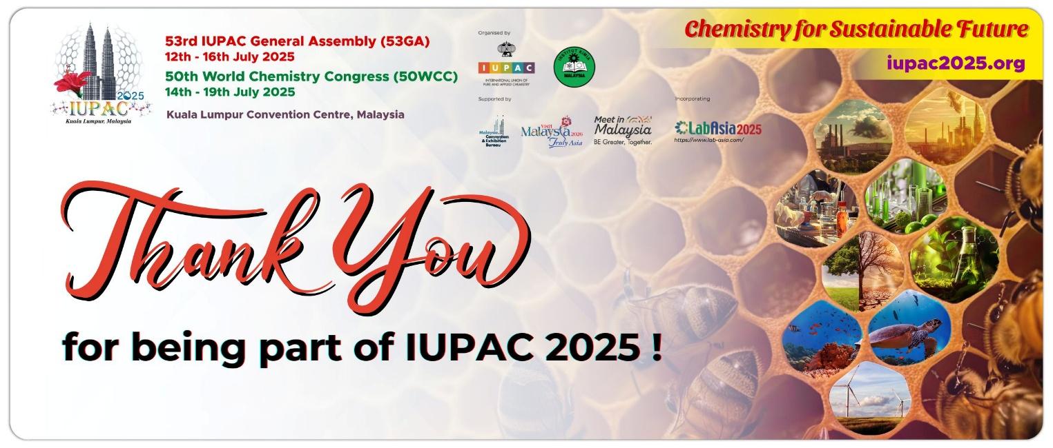 Once again, thank you everyone who has contributed to the success of the IUPAC 2025, Kuala Lumpur, Malaysia!