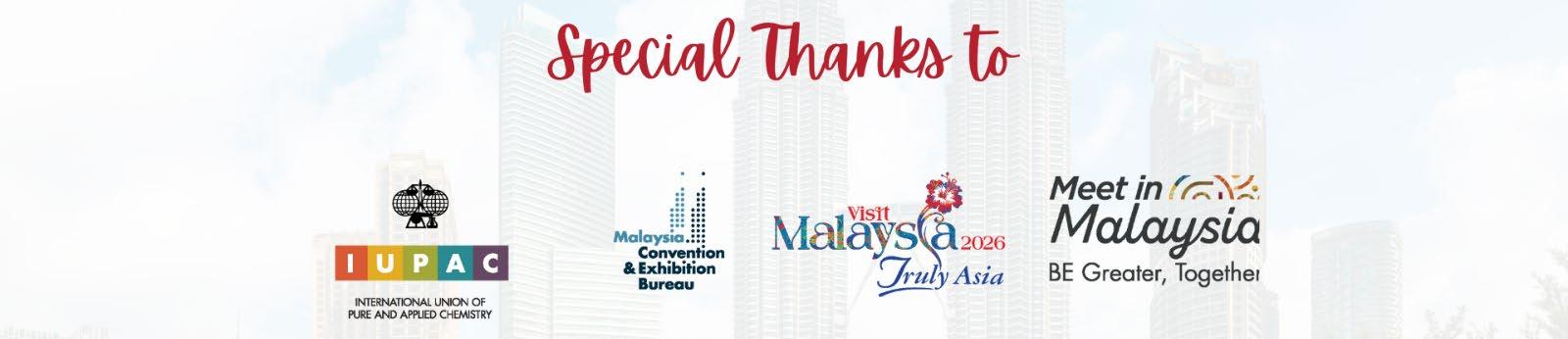 We extend our special thanks to Institut Kimia Malaysia and the Malaysia Convention & Exhibition Bureau (MyCEB) for their support on this initiative.