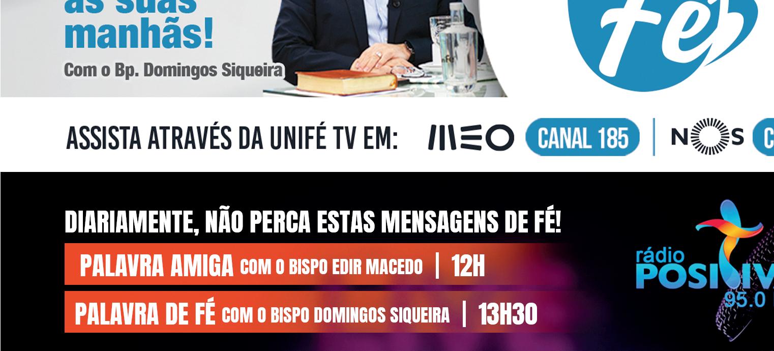 Participe na Universal mais perto de si. Horários: quintas-feiras, 7h, 10h, 15h e 20h