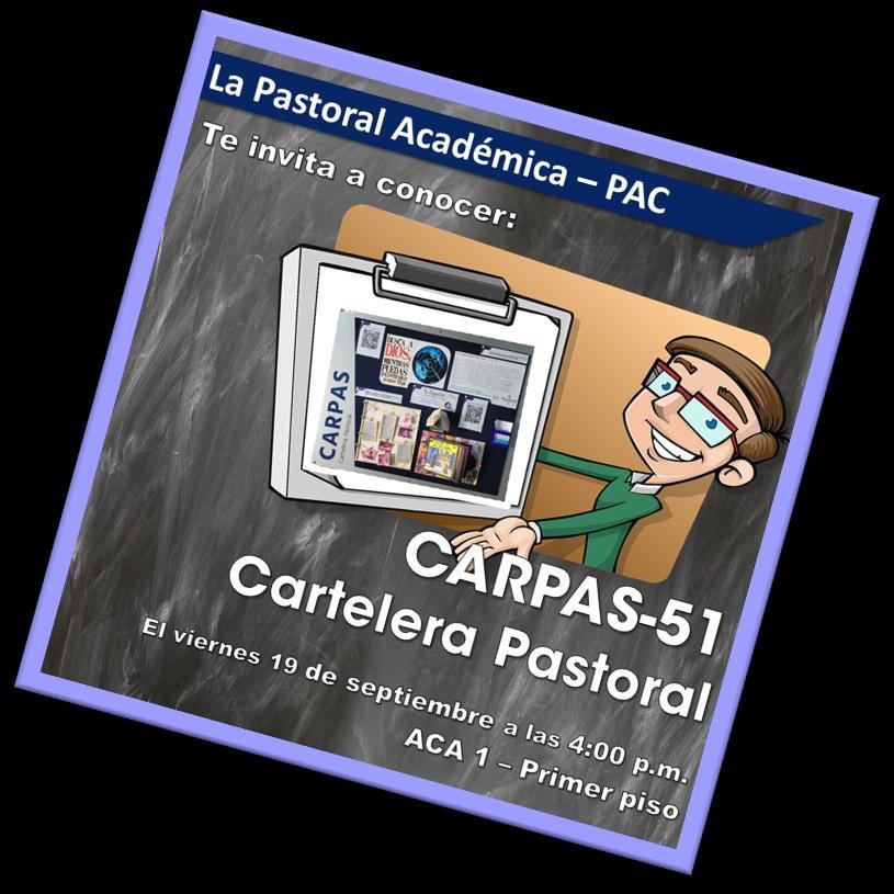 Esta sección del Boletín Pastoral pertenece a la Dirección de Pastoral (DIPA), la cual extiende la invitación a la comunidad universitaria a participar de las actividades propias de las diferentes pastorales. Por lo tanto, les recordamos que durante las próximas semanas estaremos llevando a cabo las siguientes actividades.
