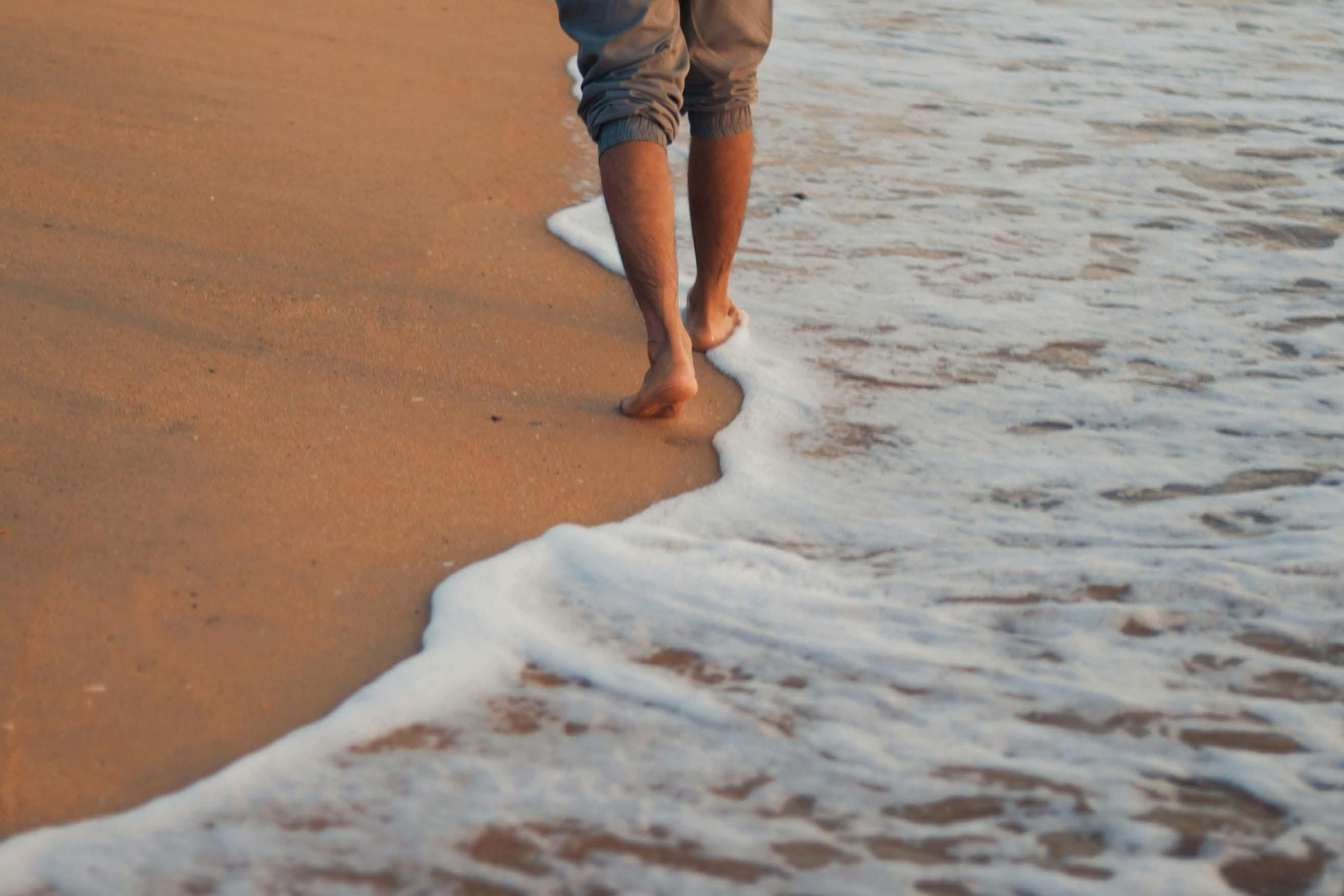 Había dos personas caminando por la playa y uno de los señores tenía una barba muy larga.