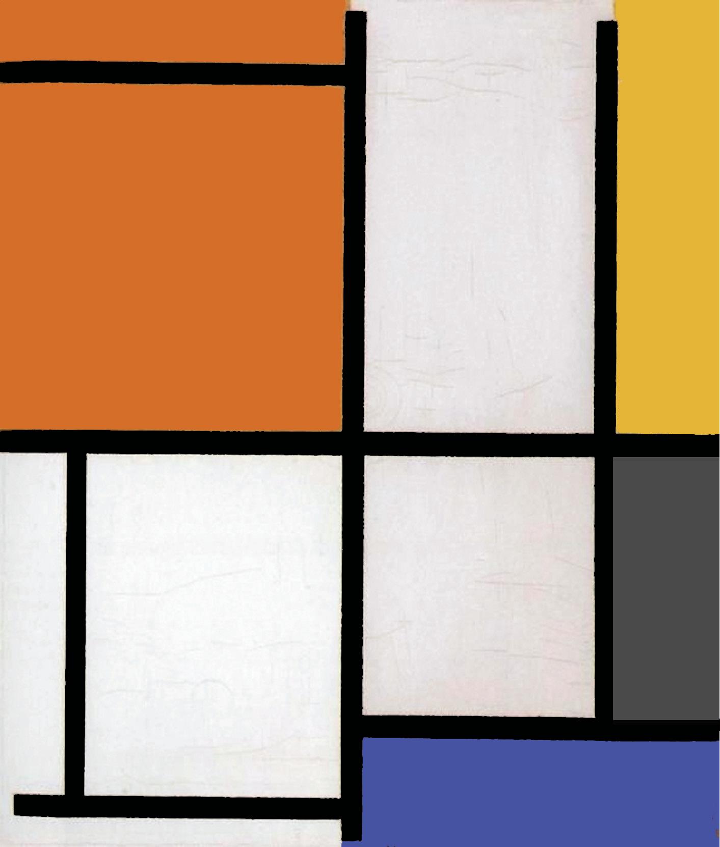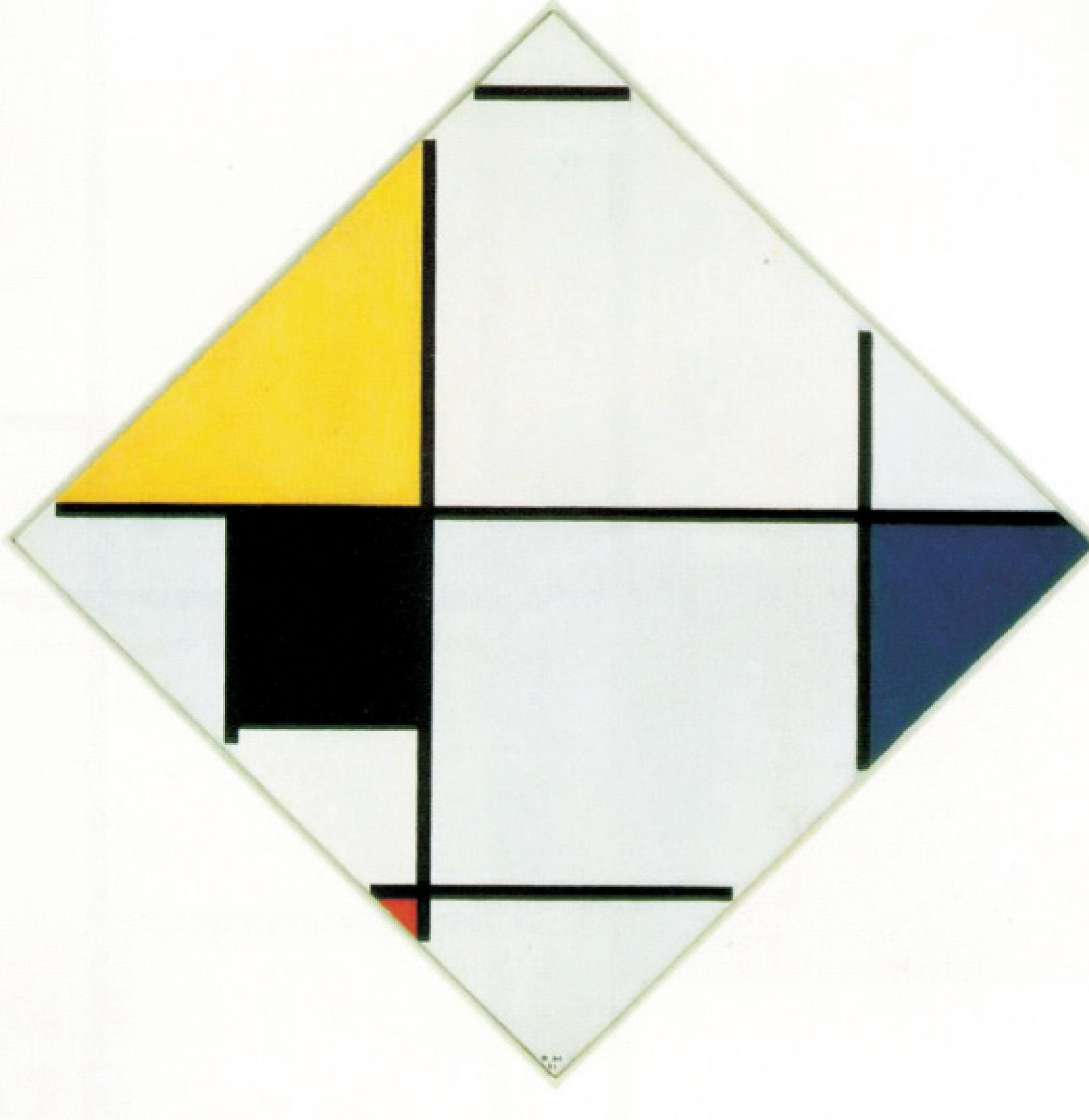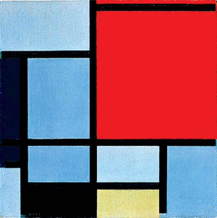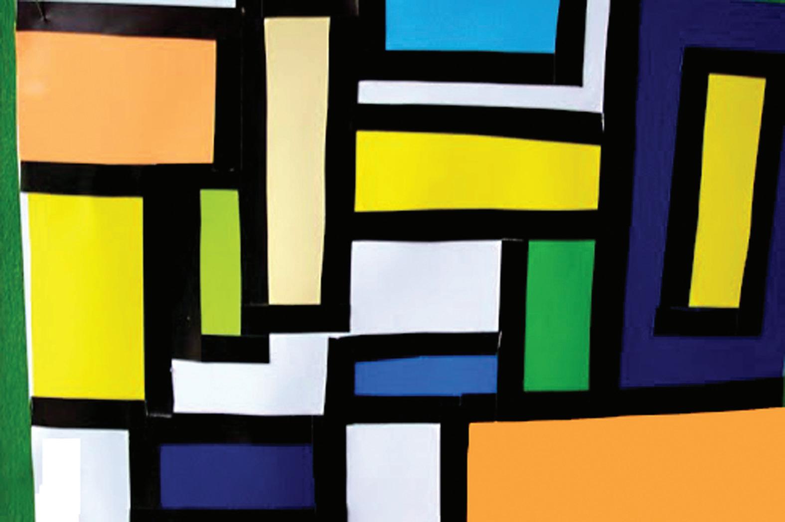 39 Дечји радови Потребан материјал – црни колаж папир, – маказе и лепак, – фломастери. Слике Пита Мондријана, слева надесно: Композиција; Ромбоидна композиција са црвеном, црном, плавом и жутом; Композиција у наранџасто-црвеној, жутој, црној, плавој и сивој. Ликовни задатак Од црног колаж папира исеци траке и залепи их на лист блока као што је урадио сликар на горњим примерима. Линије ће лист поделити на правилне облике (квадрат, троугао, правоугаоник). Фломастером обој поједине површине и рад ће бити готов. Чудесне линије и облици Један сликар је правим линијама и једноставним облицима стварао чудесне слике. Користио је црвену, плаву и жуту боју. Погледај неке од њих. Edukapromo