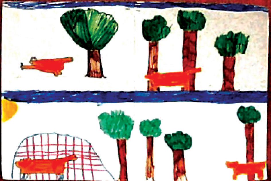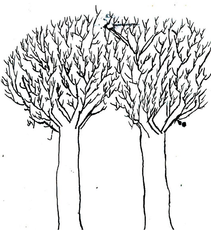 Нацртај оголело грање црним тушем. Користи усправне, положене и косе линије. Потруди се да радиш стрпљиво, пажљиво и уредно. Дечји радови на тему Дрвеће