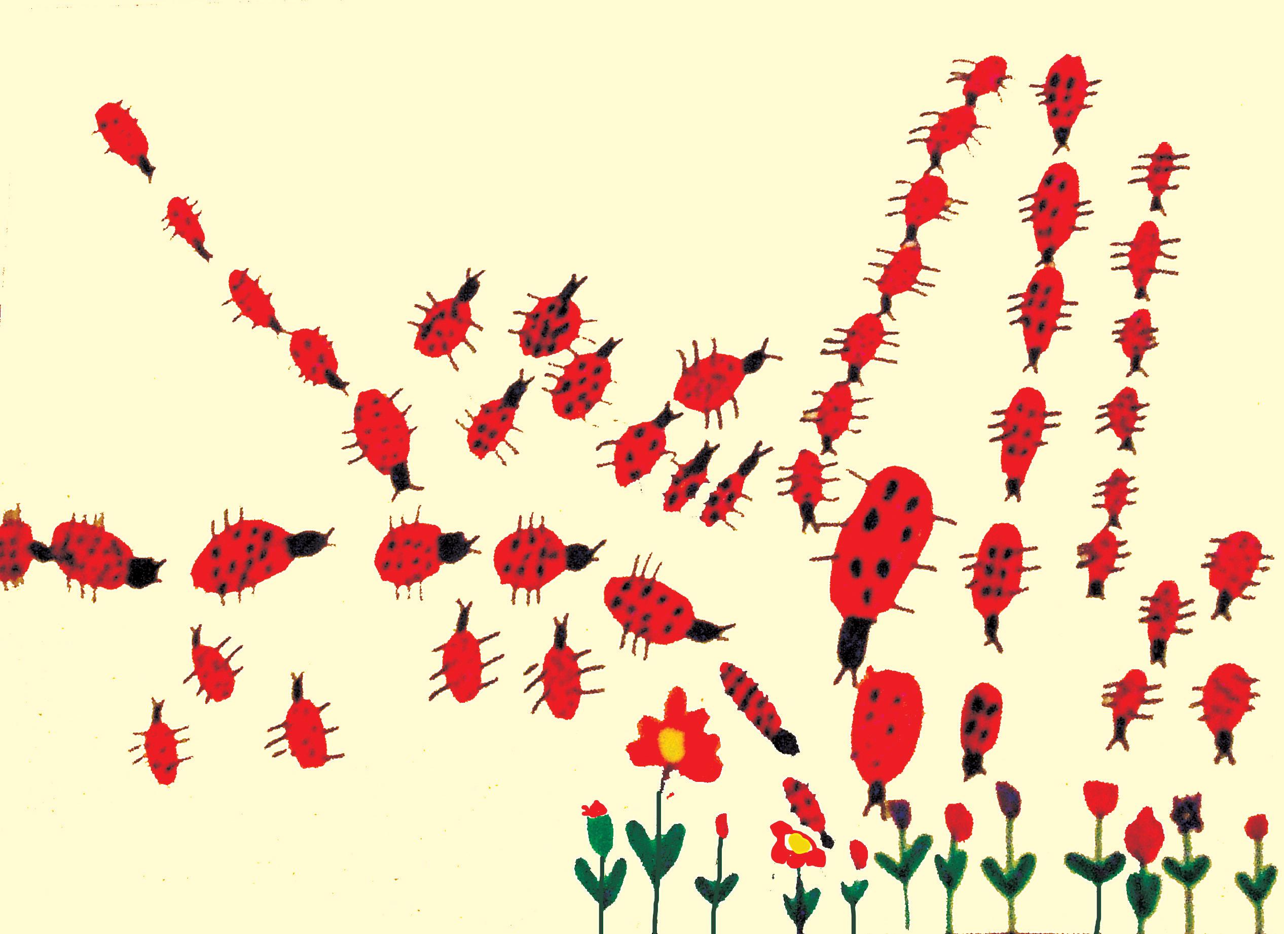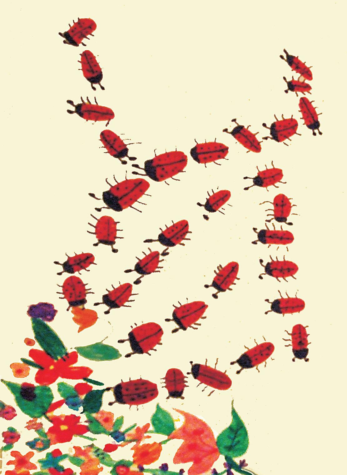 32 Лети, лети, бубамаро! Бубамаре лете од цвета до цвета, а деца, цртајући, бележе њихов лет. Ликовни задатак Фломастером можеш нацртати ројеве мрава, оса, пчела или путању лета бубамаре. Цртај на папиру у боји. Дечји радови о бубамарама Погледај слике. Кажи у ком смеру се креће која бубамара. Размисли па одговори Бубамаре у низу Edukapromo