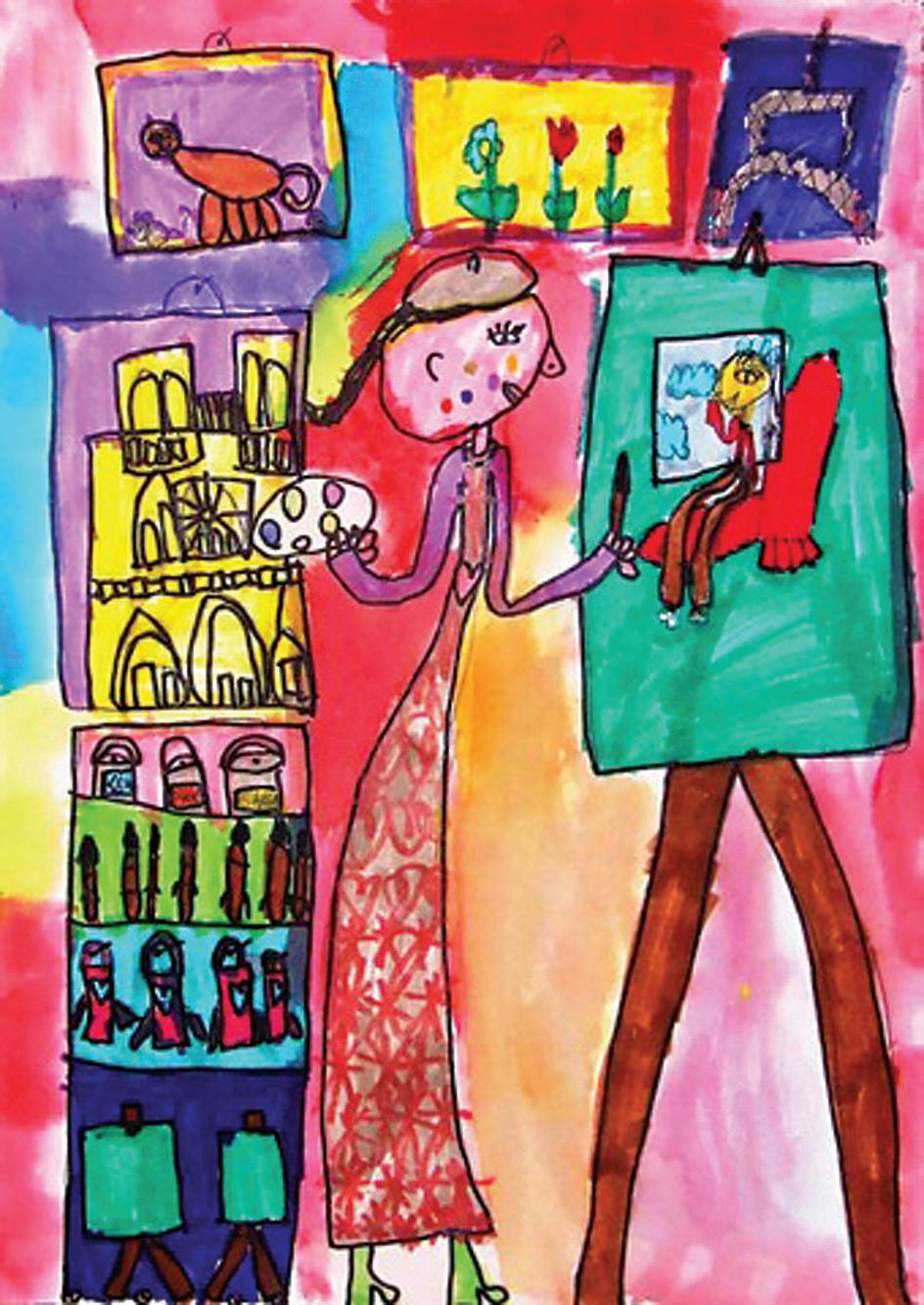 Палета Боја Четкица Запамти Палета је танка дашчица за мешање боја. Сликар ствара слике. У сваком детаљу који га окружује може наћи повод за сликање: у биљкама, животињама, људима, мору, планинама. Он може да замисли и прикаже и непознати свет. Запамти Атеље је соба за рад сликара, вајара и других уметника. Сликар у свом атељеу
