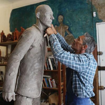 сликар, и вајар, воли да своју идеју прво нацрта. Најчешће