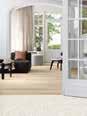 Zgodnie z obowiązującym w dziedzinie aranżacji wnętrz trendem na tworzenie otwartych przestrzeni, podłogi o różniącym się od siebie wzornictwie stanowią sprytny sposób na wydzielenie kilku różnych stref w pomieszczeniu. Poczuj ciepło drewna pod stopami w części wypoczynkowej oraz ciesz się luksusowym designem płytek winylowych w kuchni. Panele i płytki Moduleo LayRed są do siebie idealnie dopasowane, dzięki czemu gwarantują płynne przejście.