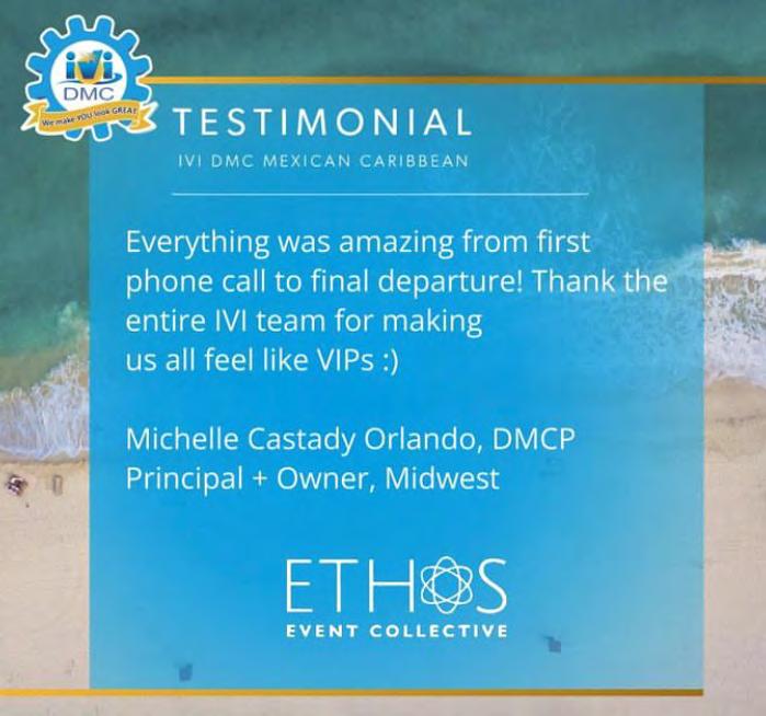 Adicionalmente, recibimos el mes con este gran testimonial de Michelle Castady Orlando, DMCP, Directora y Propietaria en ETHOS Event Collective Midwest. ¡Seguiremos trabajando arduamente para HACERTE lucir MUY BIEN!