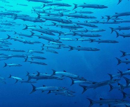 Het einde van onze duik naderde. We zwommen een beetje van het rif weg om 'Andy' op te laten en we begonnen net aan onze veiligheidsstop toen ik honderden zilveren reflecties in onze richting zag zwemmen. De grote school barracuda's had ons gevonden. We hingen er middenin. Een veiligheidsstop van 15 minuten middenin een school barracuda's. Goeiemorgen!