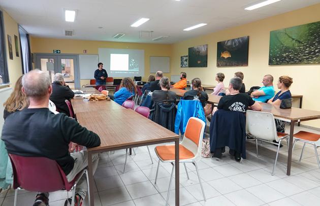 Na info over de gesteenten in een steengroeve en wat foto- en videotips kon de opgedane kennis getoetst worden tijdens een duik in de Barges.